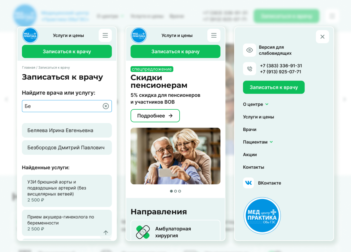 Медицинский центр «Практика ОбьГЭС» — это идеальное сочетание современного подхода к медицине и заботы о каждом пациенте. Специалисты Riva Siberia провели редизайн сайта с онлайн-записью к специалистам, интеграцией с Rest API 1С и версией для слабовидящих